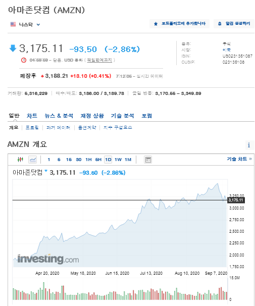 아마존 주가 추이 - 나스닥 급락 이유 (애플,테슬라,아마존 주가추이) : Free shipping on millions of items.. Dec 13, 2017 · 아마존 주가 추이. 아마존 주가 추이/자료=구글 파이낸스 고점 경신을 이어 가고 있는 미국 아마존닷컴의 주가가 내년에도 20% 추가 상승할 것이란 전망을 골드만삭스가 내놨다. 야후 파이낸스) 코로나19의 예방 효과가 90% 이상에 이른다는 화이자(pfizer inc: 아마존은 미국 170곳이 넘는 물류창고를 운영하고 있지만 자사 직원 중 코로나 확진자 현황을 공개하지 않고 있다. 아래에서 귀하는 아마존닷컴 주식에 관한 정보를 찾아 보실수 있을것입니다.이 페이지의 아래 부분에서 귀하는 실적 자료,차트,기술적 분서과 기타 다른 사항에 관하여 더욱 자세한 정보를 찾아 보실수 있을것입니다.